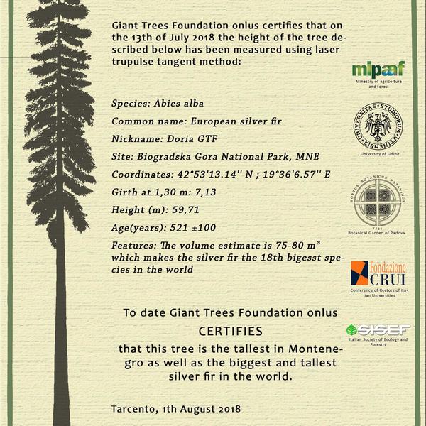 Particolarità: attualmente il più alto e più grosso albero al mondo di questa specie, misurato in arrampicata.