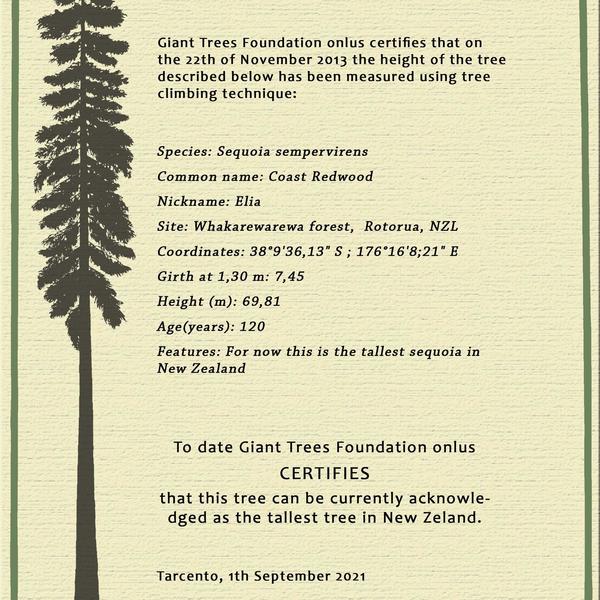 Particolarità: il "redwood grove" (bosco di sequoie) a Whakarewarewa è stato impiantato solo nel 1901 per produrre legname, ma adesso è un parco protetto; per ora questa è la sequoia più alta della Nuova Zelanda