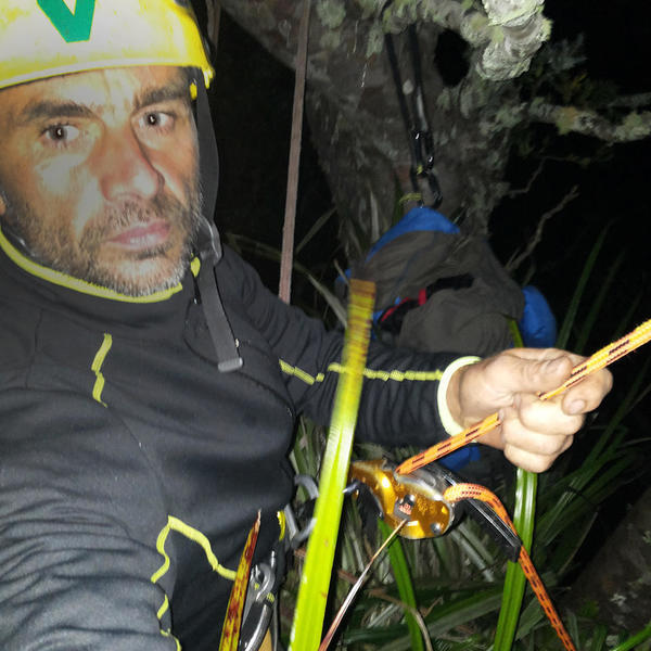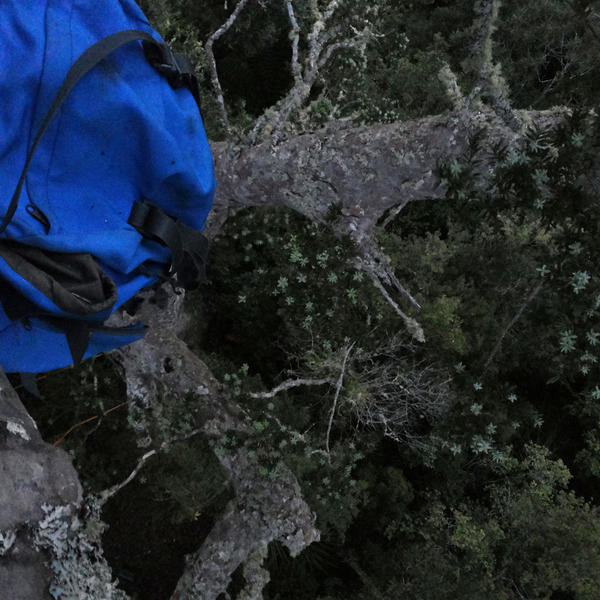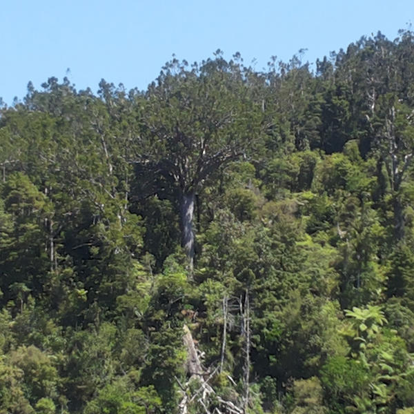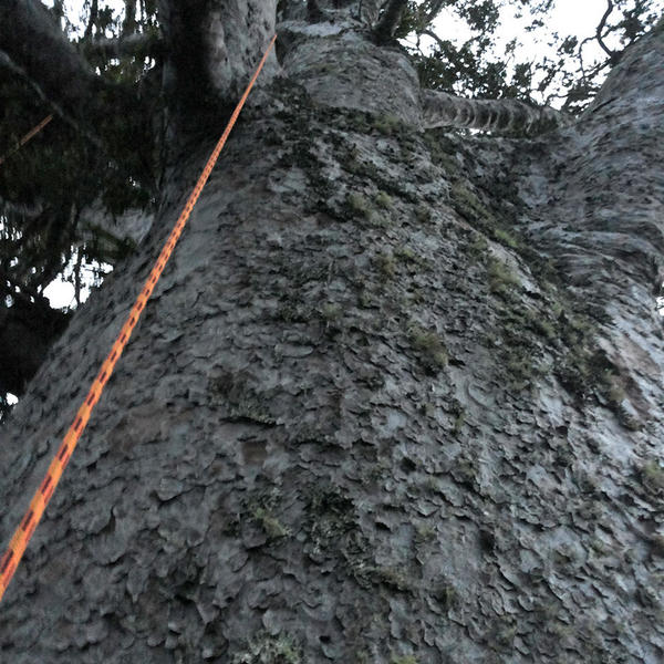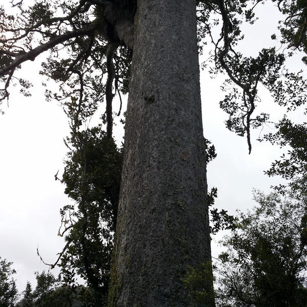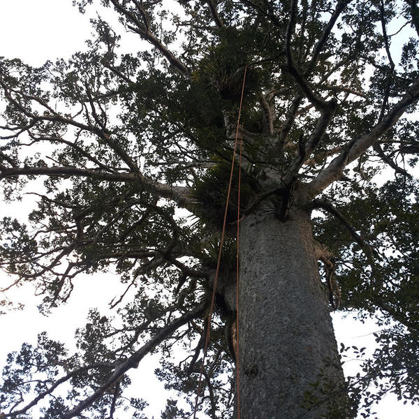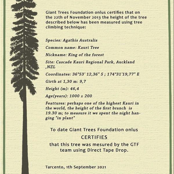 Particolarità: forse uno dei Kauri più alti del mondo, altezza prima branca 19,30 m; per misurarlo abbiamo passato la notte appesi "in pianta"