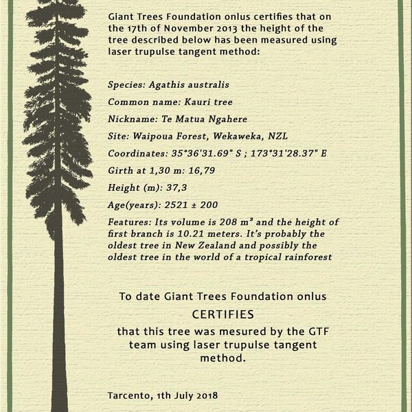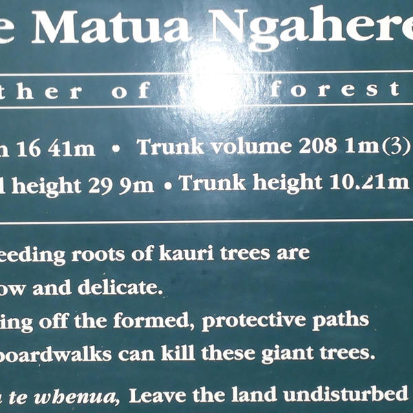 Particolarità: volume 208 mc - altezza tronco libero 10,21; probabilmente è l'albero più vecchio della Nuova Zelanda e forse il più vecchio albero al mondo di una foresta pluviale tropicale