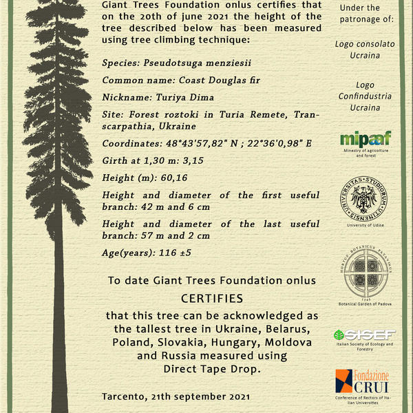 Particolarità: misurato per la prima volta in Tree climbing da GTF nel 2021 è l'albero più alto dell'Ucraina