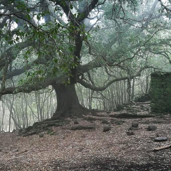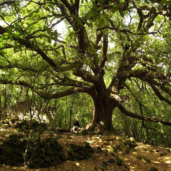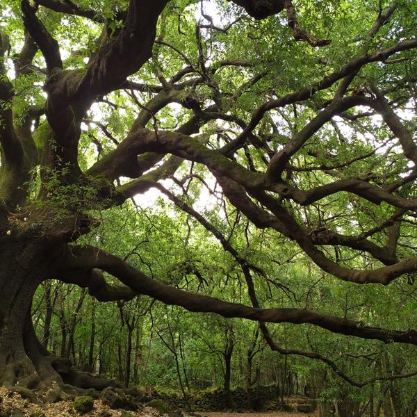 È un grosso leccio, nato lungo le falde dell’Etna, vetusto ed imponente benché circondato da piante più giovani nate dai suoi semi e da un terreno scosceso e desolato.
