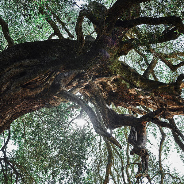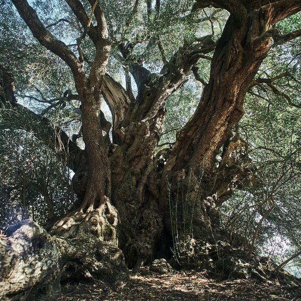 Altezzoso e maestoso, l’olivastro si erge verso il cielo con i rami amplessi e imponenti creando una visione spettacolare.