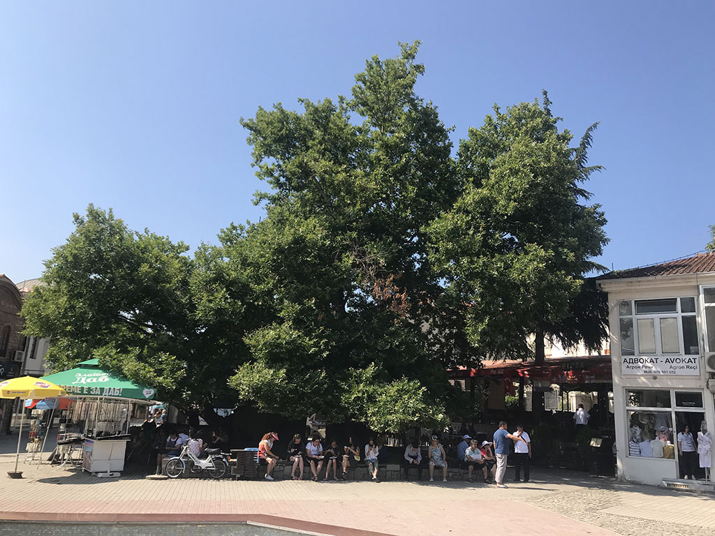Nella piazza centrale di Ohrid ci attende uno dei platani orientali più maestosi dei Balcani: un antico