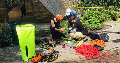 l’uscita di rane e serpenti velenosi. Ma è stato proprio quando siamo riusciti a posizionare le funi sotto