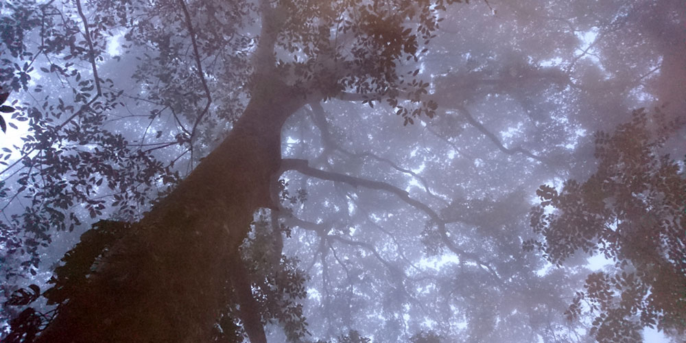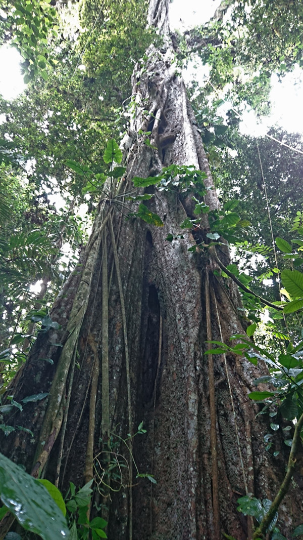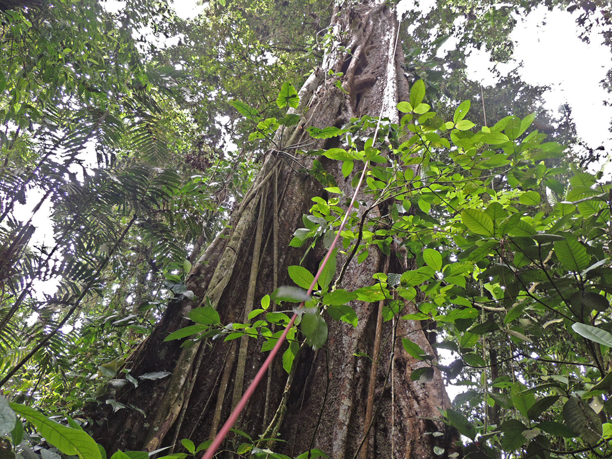 Edison e Hedilberto, la nostra guida, l’avevano già individuato in precedenza ma quando siamo andati a cercarlo, abbiamo vagato vari giorni nella foresta senza incontrare neppure un albero di dimensioni paragonabili a quel gigante che ogni mattina usciva per primo dalla nebbia che si alzava.